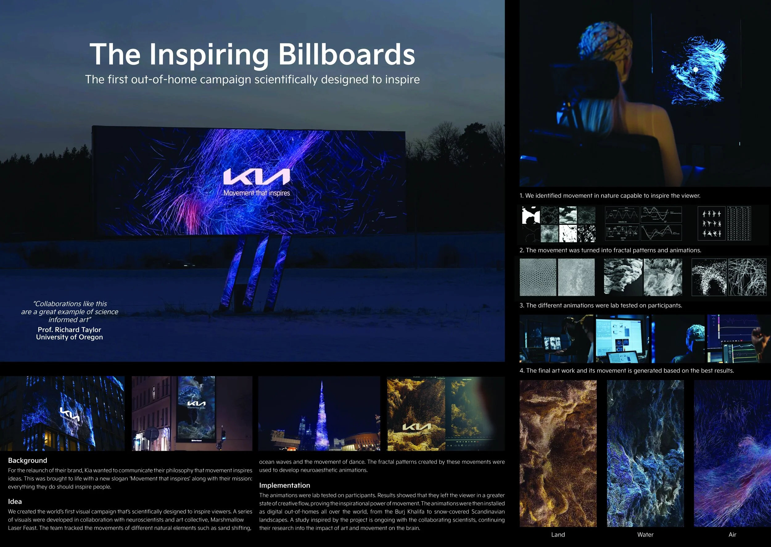 For the launch of the new Kia concept: “Movement that Inspires” we developed a manifest showing how you need to move to have new ideas. Together with that, we created an OOH campaign that puts the viewers in a state of flow to bring them instantly inspiration.